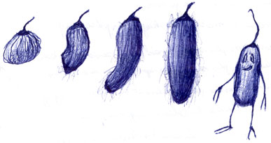 ![]() Ce même arbre à graines dévellopa une seconde évolution parallèle qui nécéssitait aussi ce nouveau type de graine, un corps de Nug avec une paire de bras de Noëw supplémentaire...n'oublions pas que les étangs, flaques et autres sont nécésssaires pour les plantes et que les feuilles mortes et autres peuvent encombré l'acheminement de l'eau. Les Nugs flottent mais non pas assez de point d'apuis pour etre utile, le Noëw lui coulerai directement au fond... c'est ainsi que le besoin se fit sentir et le Flug apparut...